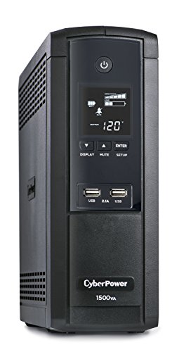 CyberPower BRG1500AVRLCD Intelligent LCD UPS System, 1500VA/900W, 12 Outlets, AVR, Mini-Tower, 5-Year Warranty