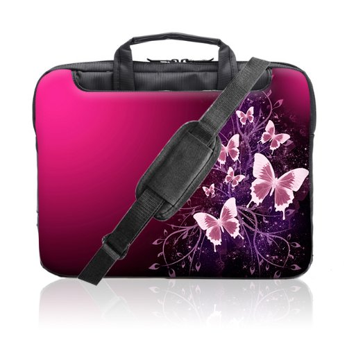 TaylorHe 15.6 inch 15 inch 16 inch Hard Wearing Nylon Laptop Carry Case Colourful Laptop Shoulder Bag with Patterns, Side Pockets Handles and Detachable Strap Pink Butterflies