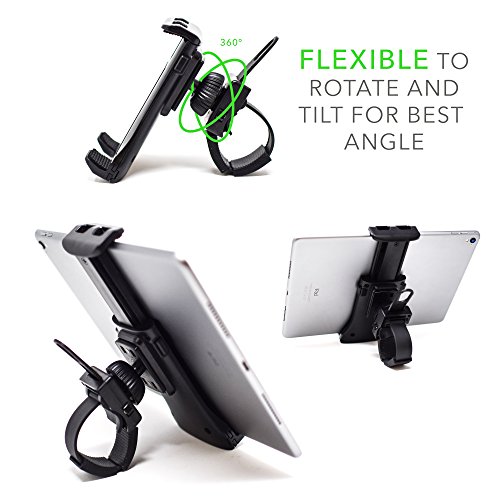 Pro Phone / Ipad / Tablet Exercise Bicycle Accessories – Holder for stationary bike, cycling, treadmill, elliptical, spinning machine. Secure mini cycling mount clamp for Iphone / Ipad on ANY machine