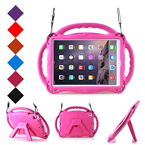 Kids Case For New iPad 9.7 inch 2017/2018 – BMOUO Shoulder Strap Shockproof Protective Handle Kickstand Case Cover for Apple iPad 9.7 inch 2017 & 2018/iPad Air/iPad Air 2 – Rose