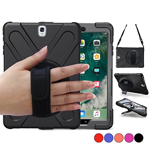 Galaxy Tab S3 9.7 Case (SM-T820), Heavy Duty Shockproof Rugged Protective Silicon Armor Cover With Hand Grip, Shoulder Strap, Rotating Stand For Kids Girls Samsung SM-T820 T825 9.7 inch Tablet(Black)