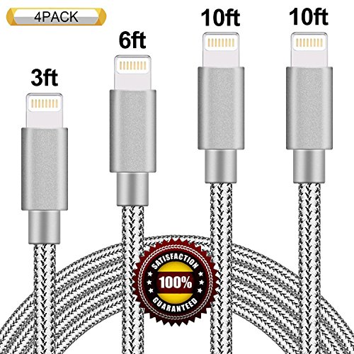 BULESK Lightning Cable 4Pack 3FT 6FT 10FT 10FT Nylon Braided Certified iPhone Cable USB Cord Charging Charger for Apple iPhone 8, X, 7, 7 Plus, 6, 6s, 6+, 5, 5c, 5s, SE, iPad, iPod Nano, Touch (Grey)