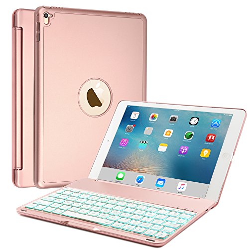iPad Air 2/iPad Pro 9.7 Keyboard Case, Boriyuan Aluminum 7 Color Backlit Wireless Bluetooth Keyboard Folio Smart Cover with Auto Sleep/Wake for Apple iPad Pro 9.7 & iPad Air 2 – Rose Gold