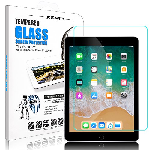 DONWELL iPad 9.7 / iPad 5 6 Screen Protector Bubble Free Anti Scratch Tempered Glass Protective Cover for Apple iPad 5th 6th generation / iPad Pro 9.7 Model A1823 A1822 New 2018 2017 9.7 inch (1 Pack)