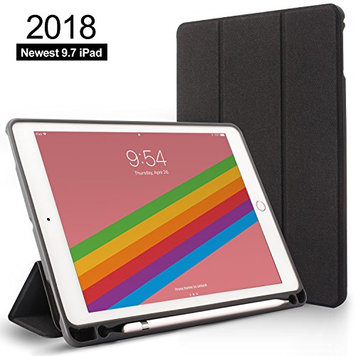 ZryXal New iPad 9.7 Inch 2018 Case with Pencil Holder Smart Case Soft TPU Back Cover with Trifold Stand and Auto Sleep/Wake for Apple iPad 6th Generation(A1893/A1954) – Black