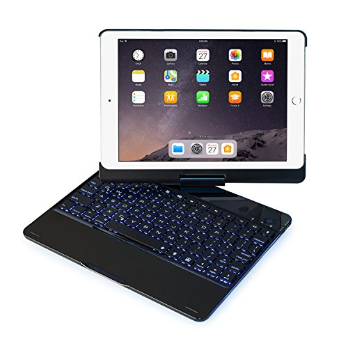 iPad Keyboard Case 2017/2018/Air/Air 2/Pro 9.7-360°Rotating Back Cover-Aluminum Bluetooth Keyboard With 7 Backlit Color(Only For 9.7’’)Staxverade