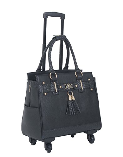 “The Berkeley” Black Spinner Wheel Rolling iPad Tablet or Laptop Tote Carryall Bag