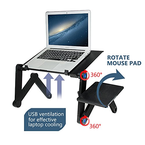 Portable Laptop Stand-Kapoo Portable Laptop Desk Foldable Laptop Stand Adjustable Laptop Table Ergonomic Bed Tray with Two CPU Cooling Fans & EXTRA Mouse Pad Side