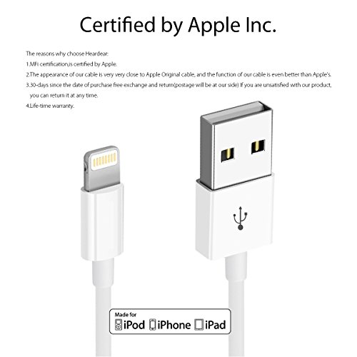 Apple iPhone/iPad charging/charger Cord/Line Heardear Lightning to USB Cable[Apple MFi Certified]for iPhone X/8/7/SE/6s/6/plus/5s/5c,iPad Pro/Air/Mini,iPod touch,Nano(White 3.33FT)Original Certified