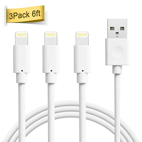 iPhone Cable, Quntis 3Pack 6FT 8 Pin iPhone Cord Lightning Cable Certified to USB Fast Charging Charger for iPhone X 8 Plus 7 Plus 6S Plus 6 Plus 5 5S 5C SE iPod iPad Pro and More Apple Devices, White