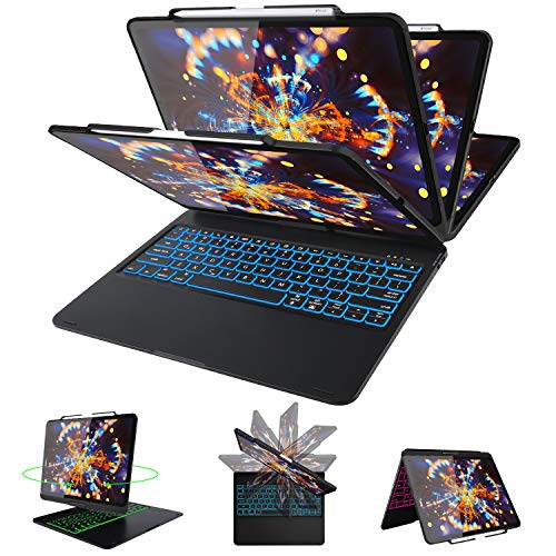 ELTD Keyboard Case for iPad Pro 12.9 2018-360°Rotation, (Auto Wake/Sleep Function) 7 Colors Backlit Wireless Keyboard Fit for iPad Pro 12.9 2018 Model A1876 A2014 A1895 A1983 (Black)