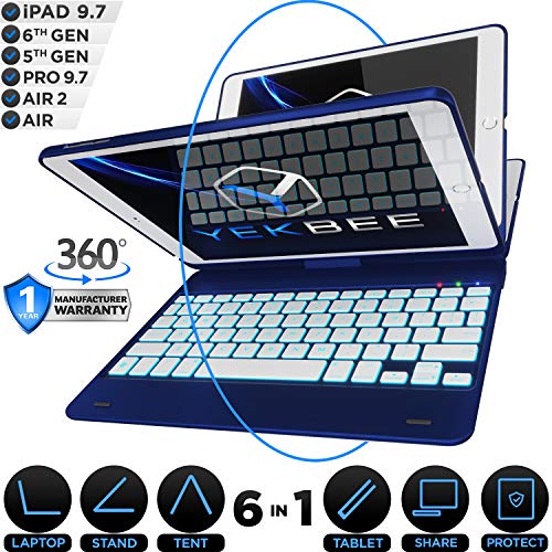 iPad Keyboard Case for iPad 2018 (6th Gen) – iPad 2017 (5th Gen) – iPad Pro 9.7 – iPad Air 2 & 1 – Thin & Light – 360 Rotatable – Wireless/BT – Backlit 10 Color – iPad Case with Keyboard (Blue)