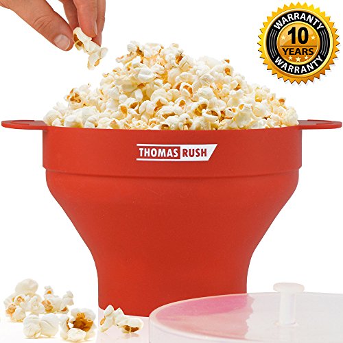 Premium Microwave Popcorn Popper by Thomas Rush – One of the Best Microwave Popcorn Makers for Home – Easy to Use – Healthy Choice – 100% Platinum Silicone – 10 Year Warranty