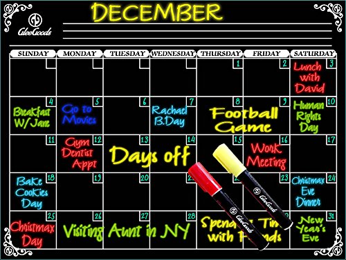 Dry Erase Magnetic Monthly Board Calendar Magnet For Refrigerator Fridge – 2 Liquid Chalkboard Markers