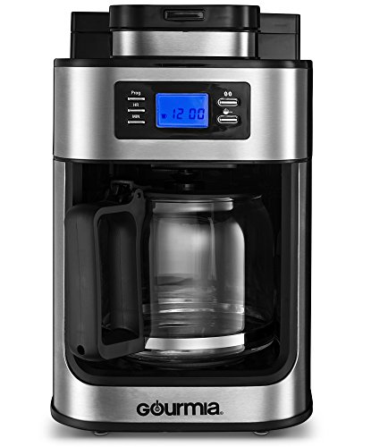 Gourmia GCM4500 Coffee Maker With Built In Grinder, Programmable 10 Cup Automatic Drip, Glass Carafe, LED Display