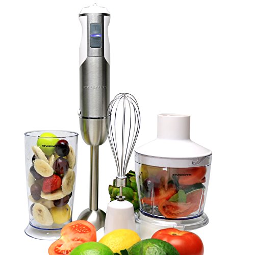 Ovente HS665W 6-Speed 500 Watt Immersion Hand Blender with Food Chopper, Beaker and Whisk Attachment, White