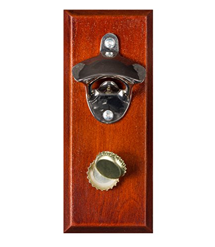 Magnetic Bottle Opener – Cap Catcher, Wall-Mounted, Refrigerator Magnet – Walnut