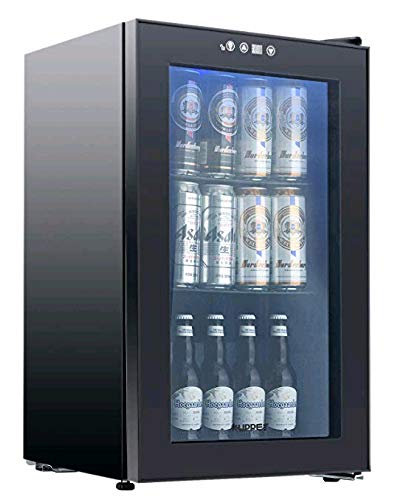 KUPPET 80-Can Beverage Cooler and Refrigerator,Mini Fridge for Home, Office or Bar with Glass Door and Adjustable Removable Shelves,Perfect for Soda Beer or Wine, Black, 2.3 Cu.Ft.