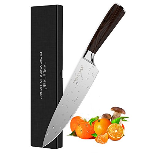 Chef’s Knife Kitchen Knife 8 inch, High Carbon Stainless Steel with Long Lasting Razor Sharp Edge and Comfortable Pakkawood Handle, Versatile Chef Knife for Cutting, Chopping, Dicing and Slicing