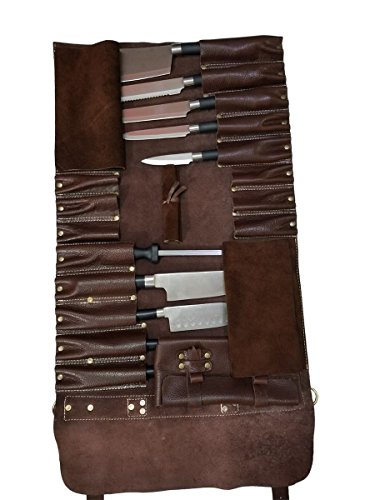 Professional Chef Bag Lightweight Genuine PREMIUM MAROON Leather 16 Pockets Knife Bag/Chef Knife Roll #K03