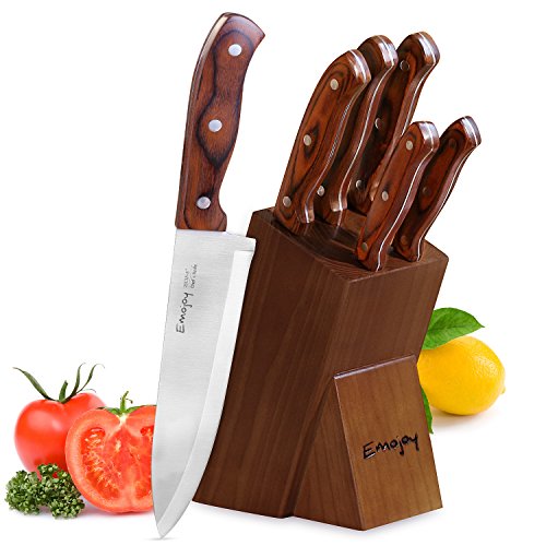 Emojoy Knife set,Kitchen Knife Set,Wooden Block 6 Pieces Knife Set with Block,German Stainless Steel