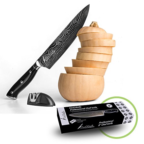 Cool Knife Japanese 8” Chef Knife & Sharpener Set for Meat, Vegetables, Fish & Chicken: Cut & Slice with Precision. Professional Kitchen Slicer w/ Ergonomic Handle, Ultra Sharp Stainless Steel Blade