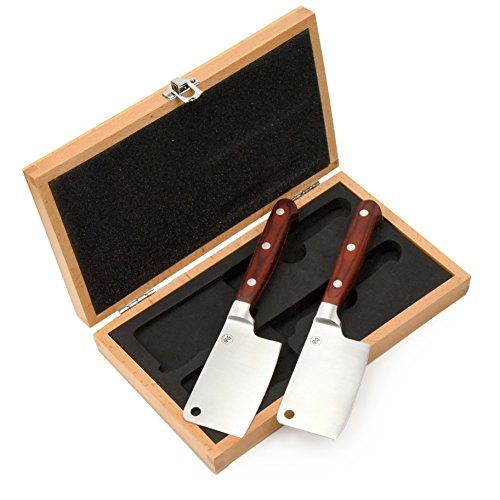 Mini Meat Cleaver Steak Knife Set 2-piece Stainless Steel Edges, Wood Handles and Presentation Case Gift Box