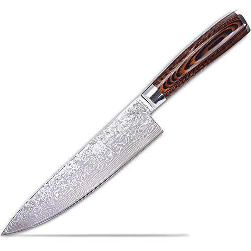 Chef Knife 8 Inch Japanese VG-10 Stainless Steel | Highest Quality Damascus Blade Professional Chefs Knives | Ultra Sharp Corrosion Resistant Kitchen Knife with Ergonomic Pakkawood Handle and Gift Box