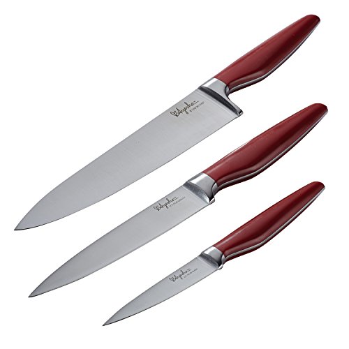 Ayesha Curry Home Collection Japanese Steel Cooking Knife Set Set, Sienna Red, 3-Piece