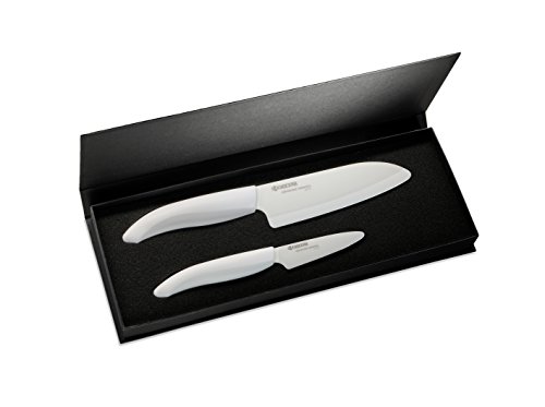 Kyocera FK-2PC-WW Advanced Ceramic Revolution Series 3″ Paring and 5-1/2″ Santoku Knife Set, White