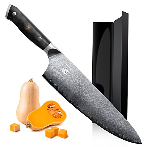 Kuma Japanese Damascus Chef Knife – PREMIUM JAPAN VG10 STEEL – Razor Sharp 8″ Cooking Knife for Carving, Slicing & Chopping – FINE MICARTA HANDLE – Pro Kitchen Multi Purpose Knives – W. Guard
