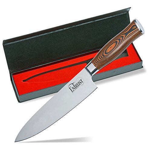 Premium 8 inch Chef Knife by EnTrust Gourmet, Razor Sharp, Ergonomic Double Forged Pakka Wood Handle, Stainless Steel, Anti-Rust, Strong, Durable, Multi Purpose for Home or Restaurant Use, Gift Box