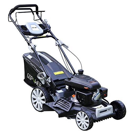 I-Choice 161cc 20 Inch 3-in-1 Gas Self-Propelled Lawnmower High Rear Wheel Drive Gasoline Push Mower with OHV Engine Deck Recoil Start System Side Discharge Mulching Rear Bag