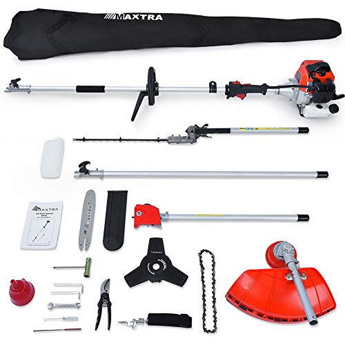 Maxtra Powerful 42.7cc 4 in 1 Trimming Tools, Multi Functional Sets Gas Pole Saw, Gas Hedge Trimmer,Brush Cutter,String Trimmer with 8.2 to 11.4 FT Extension Pole & Carry Bag Comes for Tree Pruning