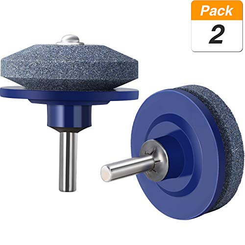 Jovitec 2 Pieces Lawn Blade Sharpener Drill Lawnmower Sharpener Mower Sharpener Any Power Drill, Blue