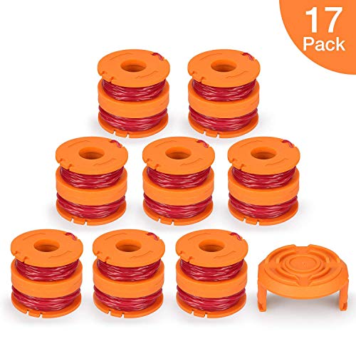SUERW Line String Trimmer Replacement Spool, [17-Pack] 10ft 0.065″ Replacement Autofeed Spool for Worx String Trimmer [16 Replacement Line Spool, 1 Trimmer Cap]