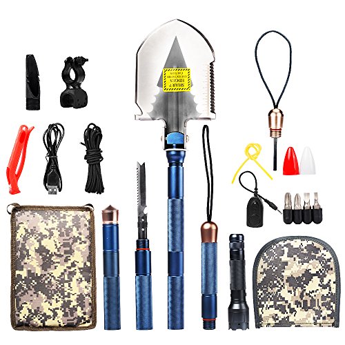 BAALAND Military Folding Shovel, Multifunctional Digging Shovel with Axe Saw Knife Flashlight for Survival Camping Gardening Outdoor Adventure