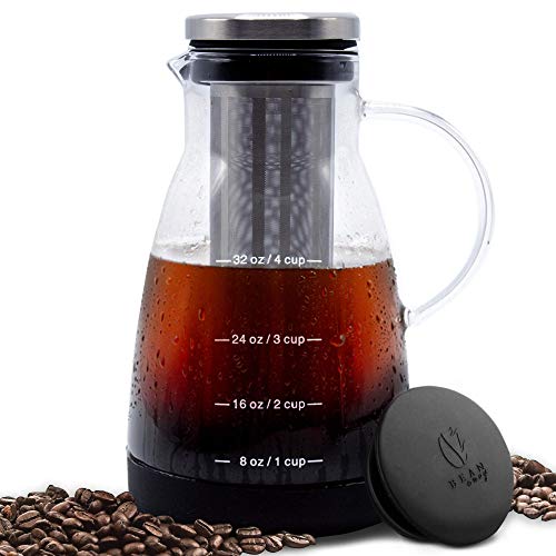 Bean Envy Cold Brew Coffee Maker – 32 oz – Premium Quality Glass – Perfect For Homemade Cold Brew and Iced Coffee – Includes Unique Non-Slip Silicone Base