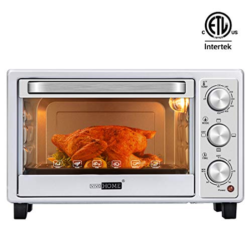 VIVOHOME 6-Slice Countertop Toaster Oven with Bake Pan, Broil Toasting Rack and Drag Hook, Oven Mitten Included, Stainless Steel, Silver