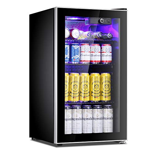 Antarctic Star Beverage Refrigerator Cooler – 100 Can Mini Fridge Glass Door for Soda Beer or Wine – Glass Door Small Drink Dispenser Machine Adjustable Clear Front for Home, Office or Bar, 3.2cu.ft.