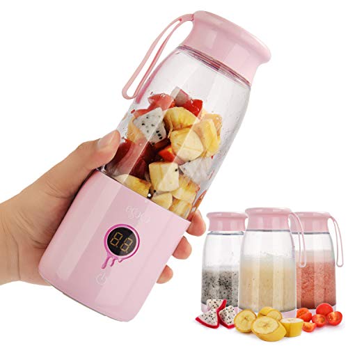Portable Juice Blender with USB Rechargeable Battery 4000mA Outdoor Travel Water Bottle with LED Smart Display Sports Health Gift -(Pink)
