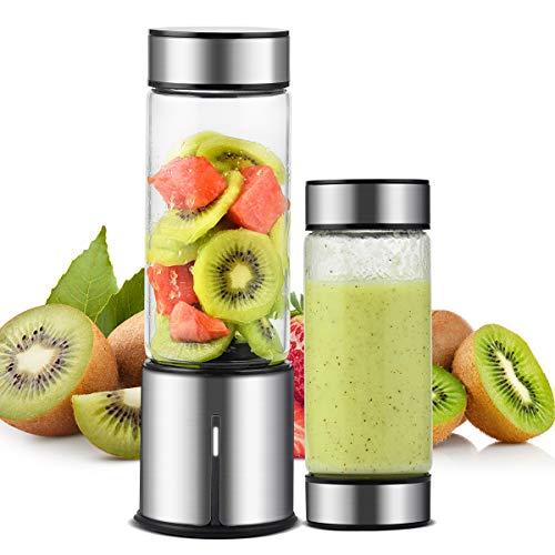 Portable Blender, TTLIFE 450ML Personal Juicer Blender with Double Cover, 5000mAH USB Rechargeable Cordless Smoothie Glass Blender for Travel, Gym, Picnic, Office, Home, Kitchen (FDA, BPA free)
