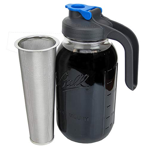 Cold Brew Mason Jar Coffee Maker with Handle by County Line Kitchen – 2 Quart – Make Amazing Cold Brew Coffee and Tea with This Durable Mason Jar and Stainless Steel Filter and Flip Cap Handle Lid