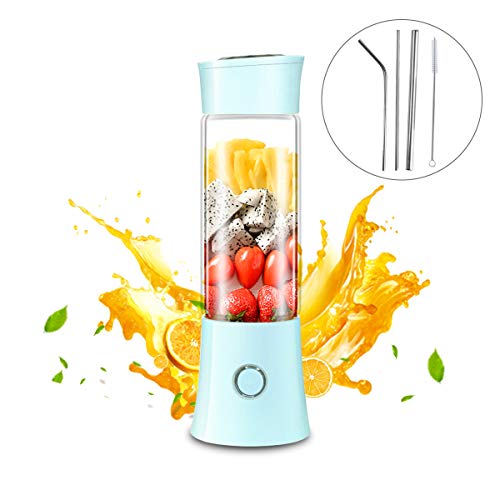 Diwenhouse Portable Blender Juicer Cup – Personal Size 16 oz Juice Glass Smoothies Shakes Strong Power Rechargeable USB Wireless BPA Free Blue