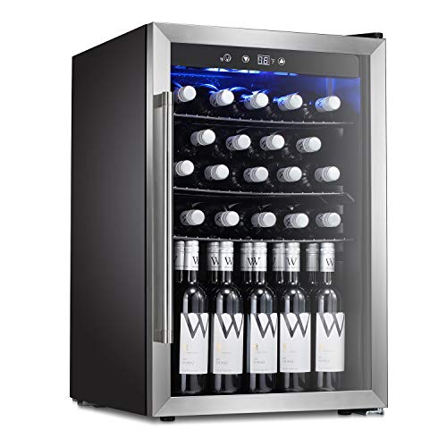 Antarctic Star Wine Cooler Beverage Refrigerator 36 Bottles Beer Wine Cellar Fridge Freestanding Chiller Stainless Steel & Quiet Operation Compressor Counter Top Glass Door/Digital Memory Office/Dorm
