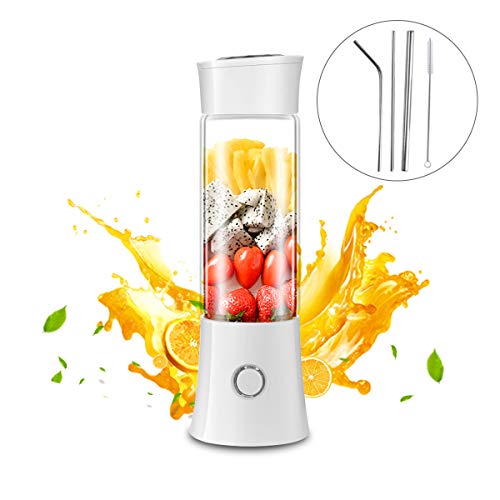 Diwenhouse Portable Blender Juicer Cup – Personal Size 16 oz Juice Glass Smoothies Shakes Strong Power Rechargeable USB Wireless BPA Free White