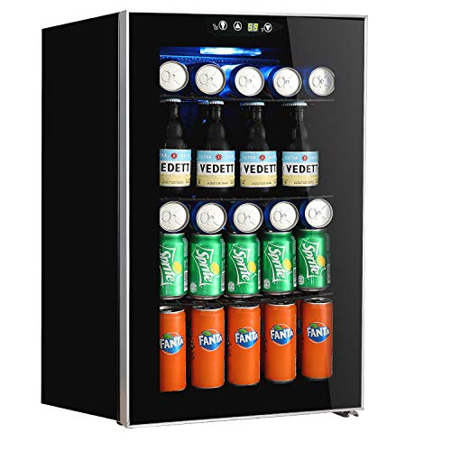 Beverage Refrigerator and Cooler,85 Can or 60 Bottles Capacity with Glass Door for Soda Beer or Wine,Touch Panel Digital Temperature Display