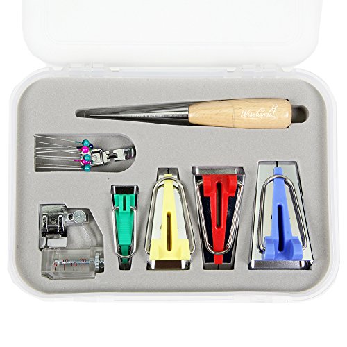 BIGTEDDY – Fabric Bias Tape Maker Kit for Sewing Quilting Awl and Adjustable Binder Foot w/ Case ( Set of 16)