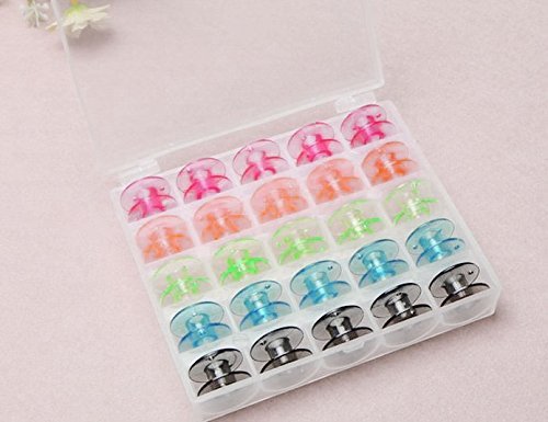 25 Pcs Transparent Plastic Sewing Machine Bobbins with Case for Brother Singer Babylock Janome Kenmore