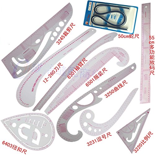 10 Stlye Fashion Ruler Set PGM Vary Form Curve French Curve Pattern Grading Rulers Curve Stick Pattern Design Ruler Set, Design Craft Sewing Tool